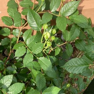 品種名不明のミニバラです。 昨秋に購入した時は小さかったけど、こんなに大きく育ちました! とても花持ちが良く開花から1週間過ぎても元気に咲いてくれています。