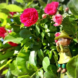いいお天気☀️ 庭のミニバラと🌹 さっき観たら、たまたまスナフキンが遊びに来てたよwww