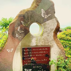 一夜城 ヨロイヅカファームへ (神奈川県小田原市) 振り続ける雨。。。 薔薇の花が水滴をまとい少し寂しげ🌹 ファーム内を奥に進むと市内と海岸線を一望できる場所にたどり着く。 そこに一つの石碑が建っている。 ---------- 私は蝶となって 咲きみだれる お花から花へと舞い 毎年咲く桜となって花ふぶきを お客様に散らし たわわに実る 果実となってあなたの作品として 美味しくお皿の上にのります 美しく生き生きとしたファームガーデンは 私の夢です その夢をかなえて下さい 今までありがとう なお美より ---------- 『川島(鎧塚)なお美慰愛碑』 僕は、彼女のことをほとんど何も知らない。 でも死を目前にした彼女の言葉に嘘がないことはわかる。ただただ相手を思う気持ち、彼のために何かをしたいという素直な想い。本当は悔しかっただろう。。。 振り続く雨の中、海に向かい彼女の冥福を祈った。