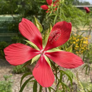 おはようございます😃 モミジアオイの花、真っ赤な花が目立って咲いていました。 散歩にて。