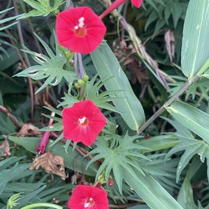 おはようございます😃 親戚の家の垣根で、ルコウソウの花が咲いていました。 真っ赤な花が目立っています。
