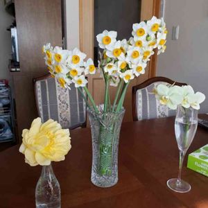 令和2年1月4日(土)、晴れ。 投稿写真は、日常的に使っている2階のキッチンのテーブルです。 この部屋に入ると、ニッポンスイセンの香りがします。左側のバラは、イングリッシュ・ローズ「ゴールデン・セレブレーション」ですが、スイセンの香りに押されています。右側はコチョウラン・ミディ・カララです。匂いはありませんが、2ヶ月以上咲いてくれています。株が弱るといけないので、2か月でカットしてグラスに挿しています。 今日は、昨日に妻から要望があったので、柳井市の「ヤナイ園芸」へ妻とお義母さんを連れてドライブしてきました。 今日から初売りセールが3日間あったので、とてもよかったです。 園芸雑貨の福袋5,000円の物を3人で出しあって買いました。お菓子の福袋2,000円は、家計から支出しました。そして、福袋を開けてみると、妻お気に入りの編み籠のバスケットや白の陶器の皿付きの鉢が入っていたので、花も1,800円ぐらい、買って帰りました。花は、40%引きだったので、ウインティー(プリムラ・マラコイデス)4ポット、ブルーデージー1ポット、パンジー8ポット、アリッサム3ポットを迎えました。 帰宅して、すぐに妻と一緒に寄せ植えや単独植えに植え替えました。 終了したのが17時半だったので、写真は撮れませんでした。 今日も妻とお義母さんの幸せそうな顔を見ることができて、幸せな気持ちになれました。 来週は、月曜日が三人同時の定期通院、木曜日は妻の胃部の内視鏡検査があります。 どんな結果が待っているのか知るよしもありませんが、とにかく、毎日を大切に生きたと思える生き方をしたいと思って生きています。
