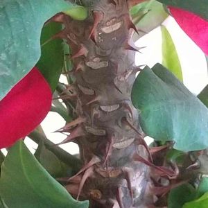花キリン 八福神 花キリン3回目の投稿は、葉をかき分けて 📸撮った鋭い棘です なかなかの棘🔍️ あたると痛いです 😣 カッコイ~棘です