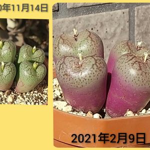 コノフィツム フィシフォルメ 水やりをし陽射しを浴びたらパンパンに膨らみ 紫がかった紅色に。。 え~こんな素敵な色になるんですね とても綺麗です💕 来年はこの倍に、 なっていると良いなぁ 小さいながらも数が増えると迫力あるだろうなぁ~🤔 頑張れ~👊