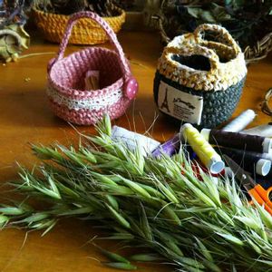 昨日の戦利品🌿 手作り編み編み籠を買い 何、入れようかな😍 からす麦、ねずみ麦、いぬ麦といろんな野草が… ねこ麦はないのかな…