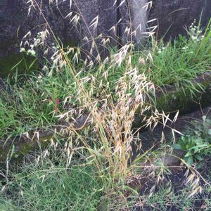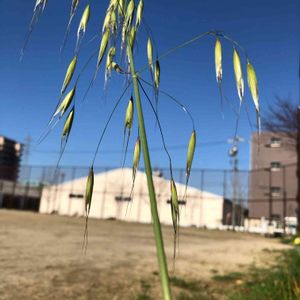 🌱🌱🌱🌱🌱🌱🌱🌱🌱🌱 【カラスムギ】🦅 📕ヨーロッパ、西アジア原産 食用の麦と一緒に入って来たと言われて居ます😓 日本全土にみられ、畑の縁や荒れ地に帰化している雑草🌱です 和名の由来は、単純にカラスが食べるムギの意味で、チャヒキグサ(茶挽草)とも呼ばれています、食用とするエンバク(マカラスムギ)に形態がよく似ています。🌱 #カラスムギ #雑草