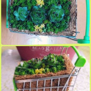 🍀寄せ植え🍀 その2 ダイソーのショッピングカートにセンベルビウムと万年草だけで作ってみました(^^)