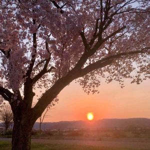 沈む夕陽と、夕陽に透ける桜 今日の最後の一枚は、またうって変わって、夕陽が沈もうとする瞬間です。昨日の投稿と同じ桜並木で撮りました😊