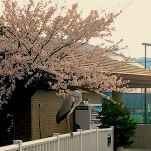 アオサギと桜 (日曜大工のお花見祭り番外編 その1) 今日は桜と野鳥が一緒に写っているpicを投稿いたします。 諏訪湖に注ぐ横河川の河口付近では、シラサギやアオサギがよく餌を漁っています。 たまたま橋の欄干にアオサギがとまったので、慌てて写しました。結構近くなのですが、拡大はこれが精一杯💦 背景も、なんだかなぁ〜😩ですが、お許し下さい🙏
