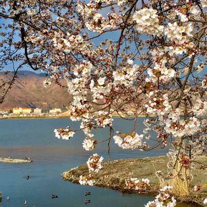 諏訪湖畔 桜並木が湖を ぐるりと囲む