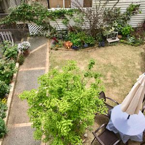 現在のお庭の様子。 花壇の横(と言うか上?)にデカめの木がモリモリ。 気持ちはいいけど、花壇としては最悪な配置? とりあえずベルガモットは撒く予定だけど、日陰に強めのお花教えて下さると嬉しいです。 あ、ちょっと変わったお花が好みです☆