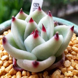 ブルードラゴン。 根出しの時に付いてた子株は、植え付け時に隠れてしまったので育ってない様子… 残念💦 でも葉挿しがうまくいってるのでウキウキ🥰