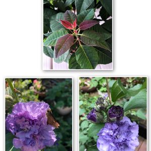 alice ちゃんからの挿し木。 ムクゲ・紫玉 またキレイに咲き始めました! そして、初めて夏越しした プリンセチア 少しずつ色付いてきたよ❤️ このまま、キレイになって欲しい💗 短日処理やってます!