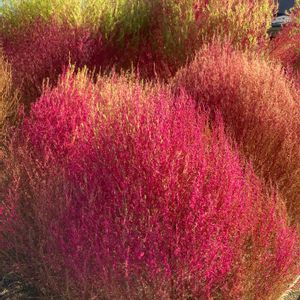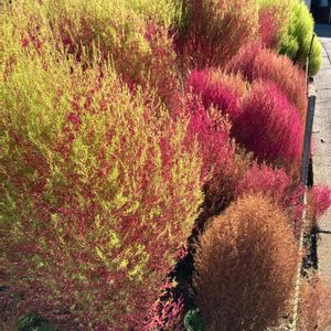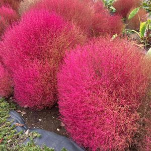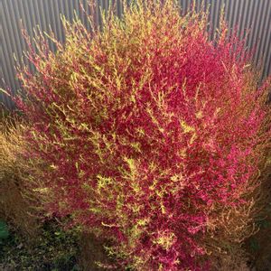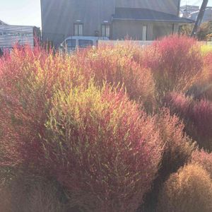 ご近所のお庭にある コキアです。 赤と言うより、ピンク色でした。 もう紅葉しているんだなと思いました。