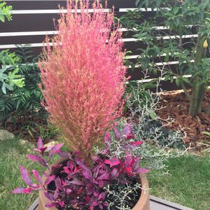 ずっと気になっていたコキア。茎が赤みがかっているのとそうじゃないのと、2株お迎えしました。6/6定植。