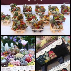 nicoriさんとのコラボで サボテンと多肉の鉢を作りました 左下 nicoriさんの寄せ植え見本 上がWSみなさんの寄せ植えです 可愛い作品になりました⸝⸝⸝⸝♡