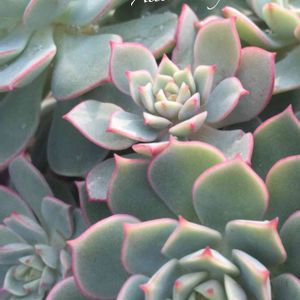 春の葉挿しの赤ちゃん もう こんなに大きくなりました。一ヶ月前は緑だけだったのに今朝から見たら縁がピンクになっているのを発見😍💕💕