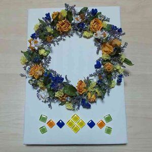 ドライフラワーのボードアレンジ ・ ガラスタイルとコラボ🎵 ・ タイルのかわりに、文字を入れようか悩んだのですが… アートに走ってみました😆🎵