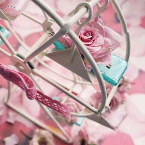 ミニバラ フラワーシリカゲルで作ったミニバラのドライフラワー💠 前回はアジサイを乗せていた観覧車にリボンと一緒に乗せてみましたよ✨ とってもラブリー~❣️