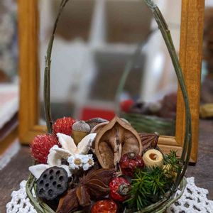こちらは揺りかごタイプの子 ちっこくて可愛い可愛い♡ 木の実の他に赤いローズヒップとシナモンもinしてXmasをイメージ🎄 先週お嫁に言ったけどかわいがってもらってるかなぁ…
