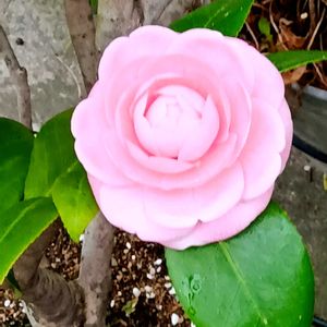 おはようございます😊🌤️🎶🌺 挿し木して数年初めて咲いた それも一個だけ咲いた「ツバキ」 綺麗な赤、ピンク🩷の椿があるので 赤❤️で嬉しい