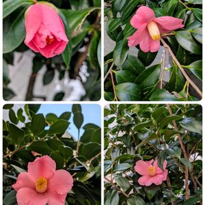 "木曜日は桃色" "木曜日は木に咲く花" 庭の地植え。 ツバキの花が咲き揃ってきました。 優しい色合いでとっても可愛いです。 📷️ 2025.3.26