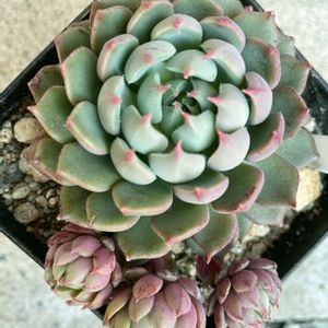 おはようございます☀️ グリーンエメラルドの葉挿しっ子💕 置き場所で、全然違い、こちらはガレージ内の子。水やり厳しめだからか、色づいてきました。 2022.12.18訂正加筆 グリーンエメラルドの葉挿しっ子と思っていましたが、名札📛のつけ間違いで 大和美尼×青い渚と判明
