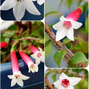 エパクリス ロンギフローラ 別名 ブッシュフクシア ネイティブフクシア フクシアヒース 枝に付く葉は小さな三角形で花は濃桃色で細長い筒状で先端は白く星型 今年も新芽と可愛い花が咲いて来ました〜❤️🤍❤️✨