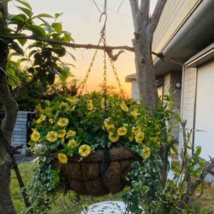 玄関前のハンギング🧺 今一番うちで元気な子たち୧( "̮ )୨ やっぱり太陽当たってる子は元気だなぁ〜