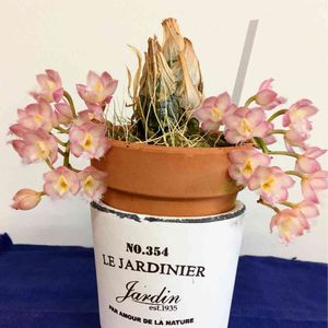 ワインデライトに新芽が出ました! この子は途中置いていた場所が悪かったせいか 一昨年咲いたバルブは腐り、さらに二番目に大きいバルブは誰かに落とされて折れ おまけに鉢も割れ でも休眠途中で根をいじることもできずそのまま放置… なんとか復活してくれて嬉しい 今年この子はコルク付けにでもしようかな🤔