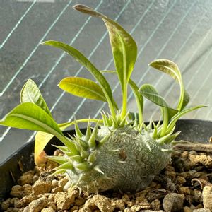 パキポ デンフローラム 小さくて緑の葉も無いけど成長が楽しみ😊 以前にアップした恵比寿大黒は緑葉出てきたので、この子も近いうちに出てくるといいな😊