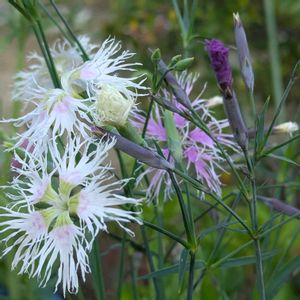①カワラナデシコ 今朝は2色咲いています🩷🤍 ②宿根バーベナ 鉢植えで咲いています☘️❤️🩷 ③宿根ネメシア 満開です🤍🤍🤍 ④ヒナゲシ 種蒔きして移植してあげられな かったのが とても小さく咲い ています🩷 ⑤シラン 地植えで沢山咲いています 🩷🩷🩷