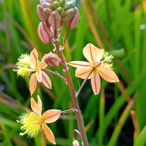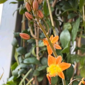 ブルビネ•フルテスケンス (花アロエ)💕 ビタミンカラーです。 黄色のふわふわ雌しべが可愛いです。 どんどん、咲き始めてきました。 今年も10月末位まで、楽しめるかな~