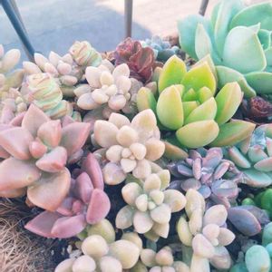 ネックレス系を集めて鉢を減らしたつもり😅アーモンドだけは量が多いのでやめました。 グリネ、ピーチ、ルビネ、ドルフィン、ハート、エンジェルを入れたのですが、途中から真ん中に寄せ植えをやり出した😆順番逆だったなー😓
