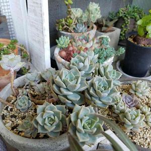 おはよーございます✨ 雨 1年間 育てた多肉を 寄せてみた