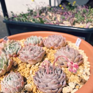 ともぞう園さんからの アニバーサリーセット 残りまとめて😅 写真の上の🌱 チューリップ🌷の姿でおピンク色 リメ鉢は、これまたタニ友ちゃんの 🎪お土産です いつもありがとう💕