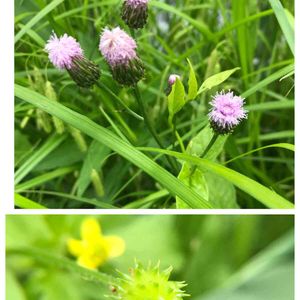 🌱上 小さなアザミさん✨ あなたのお名前は? ⭐️キツネアザミ✨でした いつもの草さんありがとうございました😊 🌱下 キツネノボタン✨