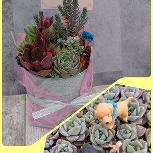 だれや!そこに隠れてるのは! ベビー:ボクがみてくる 犬:いやお供してる僕がみてくる! ベビー:いやいやボクが! 犬:いやいや僕が! ベビー:どーぞどーぞ! ダチョウ倶楽部みたいなやりとり。 文字にしたら、あんまりかも(笑) そんなことよりも! フエルトさきゅまる いただいちゃいました! ちゃんと トサカにエケベリア乗ってるし 手にも持ってるし! ヒョロ足! たらこの唇! 産みの親(娘)大喜びしています! ありがとうございます♪