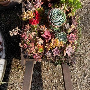 道の駅続き❀.*・゚ 手押し車とか猫車とか言う こんなものに飾るのもお洒落ですね お庭が広ければ… バックの山と菜の花畑の間には小川もあり とても癒されました(*˘︶˘*).:*♡ 別の道の駅でも普段近所には 無かった多肉を買えて 素敵な一日でした(ㅅ´ ˘ `)💕 久しぶりに自然にも触れられて満足❀.*・゚ お墓参りに行ってよかった