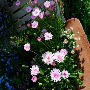 モモイロタンポポが一輪車の上で満開に✨ 可愛い〰️💠