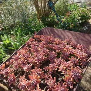 外の物にもステンシルしたくなっちゃて錆び錆び一輪車とスコップにステンシルしたよォ❗ なおさら💖お気に入りになりました🎶セダムちゃん💕盛り盛り✨嬉しいなー🙌
