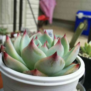 この季節になるとたくさん出てくる白雪ミセバヤ♥ このロゼット、色たまらんな~ 地植えにもしたんだけど、夏を越えられるかな~