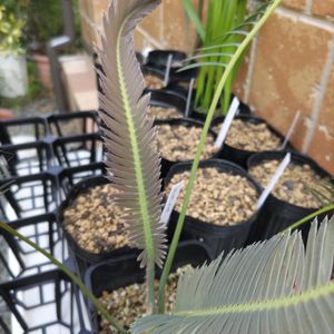 ディオーン エデュレ 安かつたのでたまたま入札したら何故か誰も追加入札せず其のまま落札したやつ。 初夏頃に新芽を二本出しました。新芽は最初銅色で展開するにつれ次第に銀色、緑色と変化するので美しいです。 所でソテツの新葉は柔かいので固まる前に他の葉との接触や風が吹くと歪んでしまい綺麗に育てるのが難しいです。