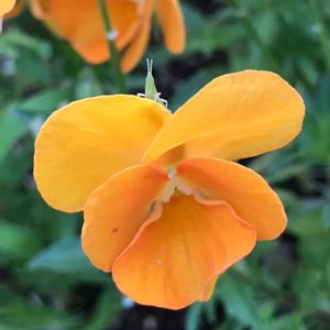 オレンジのビオラにバッタの赤ちゃんがいます😄 カワイイから許す👍 食べな❣️ あくせるさんから教えていただきました😊 この子はオンブバッタの赤ちゃんです💕