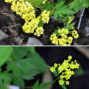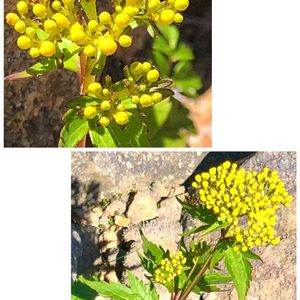 ⬆️【白山女郎花】《スイカズラ科》 花言葉 「センスの良さ」「約束を守るカッコ 別名 コキンレイカ(小金鈴花) 茎先に集散花序を作り「花冠5裂の黄色い小さな花」を複数付け、黄色い葯の雄しべ5本と花柱(雌しべ)1本あり基部には距(きょ)蜜を貯める部分もある高山植物になります ⬇️【女郎花】《オミナエシ科》 花言葉 「親切」「美人」 オミナエシ(女郎花)の名前は、 「女」という意味の「オミナ」と、古語の 「圧(へし)」が変化した「エシ」が合わさってつけられたと言われています。 女性の美しさが負けてしまうほど美しい花(女性を圧倒するほど美しい花)という意味が込められています。 オミナエシ(女郎花)の黄色い小さな花が集まって咲いている様子が穀物の粟に似ていることから、「粟花」や「粟米花」とも呼ばれることもあります。 昔は、男性は白い飯を食べ、女性は黄色い粟の飯を食べていたため、粟飯が女飯(オミナメシ)と呼ばれていたこともあり、黄色い粟飯(オミナメシ)の見た目にオミナエシの花が似ていることから、「オミナメシ」→「オミナエシ」と言われるようになったという説もあります。 オミナエシ(女郎花)の根を乾燥させて煎じたものは生薬となり「敗醤(ハイショウ)」とも言われます。