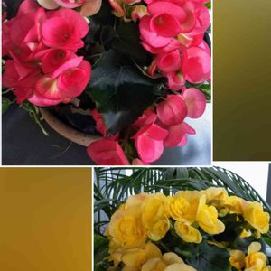 駅ビルのピンクと黄色のリーガースベゴニアの花、可愛いです💕