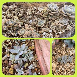半年前くらいに寄せたものが、随分大きくなりました🌟 セダムが主張してます😅 大きくなってほしい月下牡丹や野ばらの精などはあまり大きくなってないのが残念ですが、☆になってないので(^o^)👌 夏越せるかな? だんだんグミってくる子が出てきてて心配😭