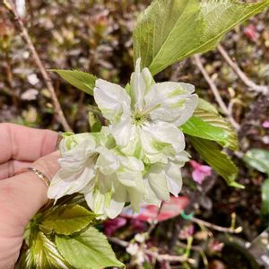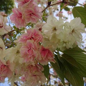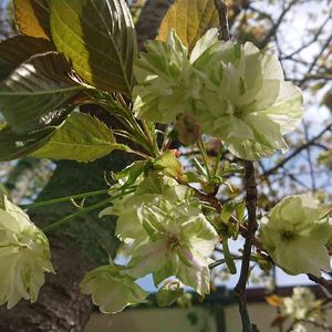 おはようございます😃 今年は、桜の開花が遅れたせいで、色々な桜がいっぺんに咲きました。 これは、まだ珍しい桜です。 御衣黄桜です。 去年、小さな神社の境内で見つけました。 まだ木は小さいですが、上品な花を咲かせています。😘 ヤマザクラのように、若葉と一緒です。 私の散歩コースでは、まだここしか見ることはできません。 もっと緑色の濃い花もあるようです。 最近、緑色の花が人気があるようです。 この桜もいい花なので、これから増えていくと思います。😊 この後、花の様子を見て、御衣黄桜ではないようです。 鬱金桜のようです。 訂正させていただきます。🙇♂️