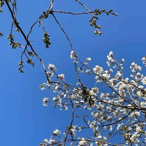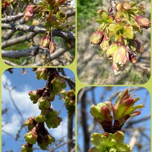 青空の下 桜のバトンタッチ⁉︎ ソメイヨシノ(右)から御衣黄桜(左上) 遅咲きの緑のサクラへ🌸