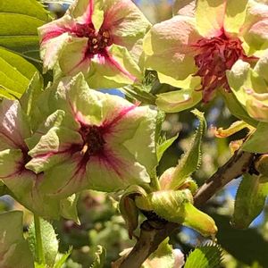 実家で咲いている御衣黄桜 まだ開花したばかりですが、緑色の桜です。 だんだんと花の中央が赤く染まります✨ GSでこの桜を知って、実家に昨年仲間入りしました😁 初めての開花なんです💕